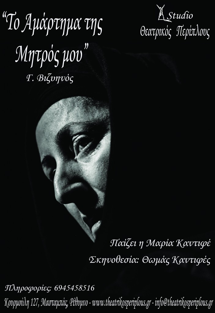 Αυτή η γυναίκα, λοιπόν, έγινε η κεντρική ηρωίδα για εμάς. Τη «βρήκαμε» στο σπίτι της εκεί κάπου στα 1907, να ζει με τα φαντάσματά της, να περιμένει για πάντα το Γιωργή να γυρίσει, να συνειδητοποιεί, να θυμάται και να ξαναζεί στιγμές της ζωής της ταξιδεύοντας μέσα από τα λόγια και την σκέψη του παιδιού της, του Γεώργιου Βιζυηνού, μεταφέροντάς μας με την απλότητα αλλά και το βάθος, που έχει μια τέτοια γυναίκα το διήγημα «Το αμάρτημα της μητρός μου»…το δικό της «αμάρτημα».